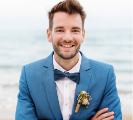 “During a sunny Sunday morning picnic at the Liberty Memorial, David shocked Kate by dropping to one knee and telling her he wanted to spend the rest of his life with her. With no ring in hand, he told her to turn around, where she found their best friends standing with signs reading, “Will you marry me?” Then, the pair’s puppy, Wasabi, made his grand entrance in a mini tux with a ring box around his neck. “Somewhere during all the hugging and crying, a sparkling ring ended up on my left hand and a dozen red roses in my right,” Kate says.”